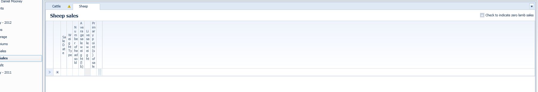 <Grid Visibility="{Binding Path=DataContext.PlanEnrolment.HasCowCalf, Mode=OneWay, RelativeSource={RelativeSource FindAncestor, AncestorType={x:Type Sale:SaleManagementView}}, Converter={StaticResource BooleanToVisibilityConverter}}" HorizontalAlignment="Stretch" > <Grid.RowDefinitions> <RowDefinition /> <RowDefinition /> <RowDefinition /> </Grid.RowDefinitions> <Grid Grid.Row="0"> <Grid.ColumnDefinitions> <ColumnDefinition Width="*"></ColumnDefinition> <ColumnDefinition Width="*"></ColumnDefinition> <ColumnDefinition Width="*"></ColumnDefinition> </Grid.ColumnDefinitions> <TextBlock Grid.Column="0" Text="Calf sales" Style="{StaticResource CategoryHeaderText}"/> <CheckBox Grid.Column="2" HorizontalAlignment="Right" VerticalAlignment="Center" x:Name="NoCowCalfSaleDataCheckBox" Margin="5, 0, 5, 1" Content="Check to indicate zero calf sales." IsChecked="{Binding Path=DataContext.IsCattlePlanCowCalfNoSaleData, RelativeSource={RelativeSource AncestorType=Sale:SaleManagementView}}" Visibility="{Binding Path=DataContext.IsQ2OrQ4, Mode=OneWay, RelativeSource={RelativeSource FindAncestor, AncestorType={x:Type Sale:SaleManagementView}}, Converter={StaticResource BooleanToVisibilityConverter}}"/> </Grid> <RmpControls:RmpGridView x:Name="gridviewCalfSales" Grid.Row="1" ItemsSource="{Binding Path=CalfSales}" IsEnabled="{Binding ElementName=NoCowCalfSaleDataCheckBox, Path=IsChecked, Converter={StaticResource ReverseBooleanConverter}}" IsSaleGrid="True" GridCategory="CattleCowCalf" Style="{StaticResource GridViewStyle}" ShowColumnFooters="False" Visibility="{Binding Path=DataContext.IsQ2OrQ4, Mode=OneWay, RelativeSource={RelativeSource FindAncestor, AncestorType={x:Type Sale:SaleManagementView}}, Converter={StaticResource BooleanToVisibilityConverter}}"> <RmpControls:RmpGridView.Columns> <telerik:GridViewDataColumn DataMemberBinding="{Binding SaleDate}" Width="100" DataFormatString="{}{0:MM/dd/yyyy}" TextAlignment="Left"> <telerik:GridViewDataColumn.Header> <TextBlock Text="Sale Date" Style="{StaticResource ColumnHeaderTextStyle}" /> </telerik:GridViewDataColumn.Header> <telerik:GridViewDataColumn.CellEditTemplate> <DataTemplate> <RmpControls:RmpDatePicker Editable="False" SelectedDate="{Binding SaleDate}" DisplayDate="{Binding QuarterStartDate, Mode=OneWay}" DisplayDateStart="{Binding QuarterStartDate, Mode=OneWay}" DisplayDateEnd="{Binding QuarterEndDate, Mode=OneWay}" /> </DataTemplate> </telerik:GridViewDataColumn.CellEditTemplate> </telerik:GridViewDataColumn> <telerik:GridViewComboBoxColumn DataMemberBinding="{Binding Path=GenderId}" ItemsSource="{Binding Path=Genders}" UniqueName="CodeId" DisplayMemberPath="ShortDescription" SelectedValueMemberPath="CodeId" Width="60" > <telerik:GridViewComboBoxColumn.Header> <TextBlock Text="Gender" Style="{StaticResource ColumnHeaderTextStyle}" /> </telerik:GridViewComboBoxColumn.Header> </telerik:GridViewComboBoxColumn> <RmpControls:RmpGridViewIntegerValueColumn DataMemberBinding="{Binding Path=HeadSold, Converter={StaticResource IntegerValueFormatConverter}}" Width="85" TextAlignment="Right"> <RmpControls:RmpGridViewIntegerValueColumn.Header> <TextBlock Text="Number of head sold" Style="{StaticResource ColumnHeaderTextStyle}" /> </RmpControls:RmpGridViewIntegerValueColumn.Header> </RmpControls:RmpGridViewIntegerValueColumn> <RmpControls:RmpGridViewDecimalValueColumn DataMemberBinding="{Binding Path=AverageLiveSaleWeight, Converter={StaticResource DecimalValueFormatConverter}}" Width="85" TextAlignment="Right"> <RmpControls:RmpGridViewDecimalValueColumn.Header> <TextBlock Text="Average sale weight (lb)" Style="{StaticResource ColumnHeaderTextStyle}" /> </RmpControls:RmpGridViewDecimalValueColumn.Header> </RmpControls:RmpGridViewDecimalValueColumn> <telerik:GridViewDataColumn DataMemberBinding="{Binding Path=PointOfSale}" Width="*" > <telerik:GridViewColumn.CellEditTemplate> <DataTemplate> <RmpControls:RmpPopupTextEditor DataContext="{Binding}" MaxLength="500" Text="{Binding Path=PointOfSale,Mode=TwoWay,UpdateSourceTrigger=PropertyChanged}" Title="Primary point(s) of sale (Max. 500)" /> </DataTemplate> </telerik:GridViewColumn.CellEditTemplate> <telerik:GridViewDataColumn.Header> <TextBlock Text="Primary point(s) of sale" Style="{StaticResource ColumnHeaderTextStyle}" /> </telerik:GridViewDataColumn.Header> </telerik:GridViewDataColumn> <RmpControls:RmpGridViewButtonColumn Focusable="False" /> </RmpControls:RmpGridView.Columns> </RmpControls:RmpGridView> <TextBlock Grid.Row="2" Text="Please use Q2 or Q4 forms to enter Cow-calf sales data." FontSize="12" Margin="15,10,1,20" Visibility="{Binding Path=DataContext.IsQ2OrQ4, Mode=OneWay, RelativeSource={RelativeSource FindAncestor, AncestorType={x:Type Sale:SaleManagementView}}, Converter={StaticResource ReverseVisibilityBooleanConverter}}"/> </Grid> <!--Backgrounder cattle sales--><Grid Visibility="{Binding Path=DataContext.PlanEnrolment.HasBackgrounderOrFeedlot, Mode=OneWay, RelativeSource={RelativeSource FindAncestor, AncestorType={x:Type Sale:SaleManagementView}}, Converter={StaticResource BooleanToVisibilityConverter}}"> <Grid.RowDefinitions> <RowDefinition/> <RowDefinition /> </Grid.RowDefinitions> <Grid Grid.Row="0"> <Grid.ColumnDefinitions> <ColumnDefinition Width="*"></ColumnDefinition> <ColumnDefinition Width="auto"></ColumnDefinition> </Grid.ColumnDefinitions> <TextBlock Grid.Column="0" Text="Backgrounder and feedlot cattle sales" Style="{StaticResource CategoryHeaderText}" /> <Grid Grid.Column="1" HorizontalAlignment="Right"> <Grid.ColumnDefinitions> <ColumnDefinition Width="auto"></ColumnDefinition> <ColumnDefinition Width="auto"></ColumnDefinition> <ColumnDefinition Width="auto"></ColumnDefinition> </Grid.ColumnDefinitions> <TextBlock Grid.Column="0" Visibility="{Binding Path=DataContext.PlanEnrolment.HasBackgrounderOrFeedlot, Mode=OneWay, RelativeSource={RelativeSource FindAncestor, AncestorType={x:Type Sale:SaleManagementView}}, Converter={StaticResource BooleanToVisibilityConverter}}" Text="Check t