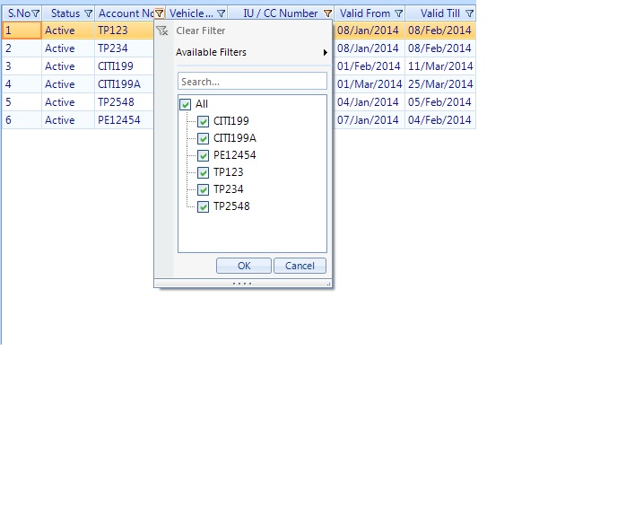 I am using Excel Like Filter in my grid view. Using the filter I can select the value in check box , but not able to click the 'ok' or 'cancel' button to filter the values. The button not working.