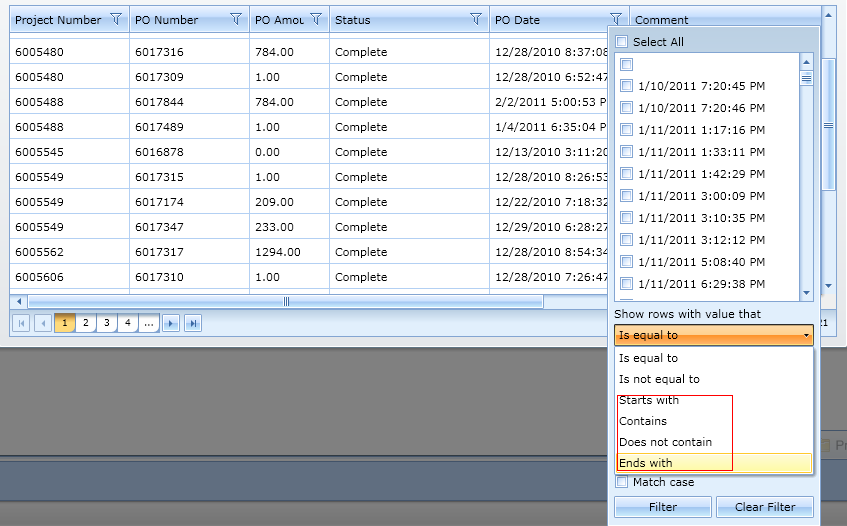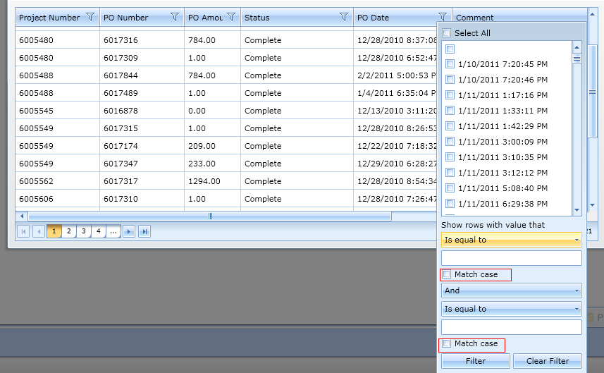 I have a POlist_grid in my code and i have set IsFilteringAllowed