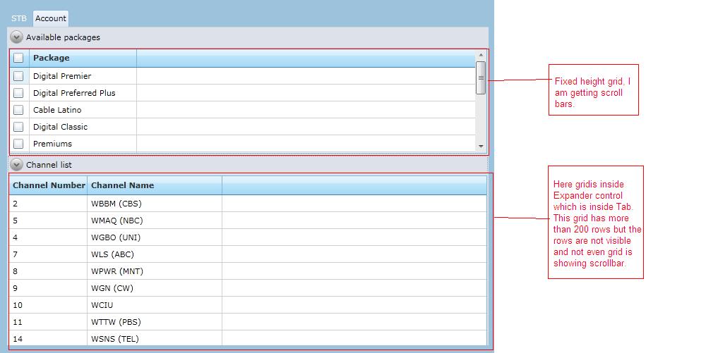 I am using Rad GridView in my application. when I am having fixed height in my grid, the rows are getting displayed correctly but when I have not specified any height, all the rows are not visible, the rows are getting displayed up to the available height of the tab and other rows are invisible and the grid is not even showing any scrolbar.