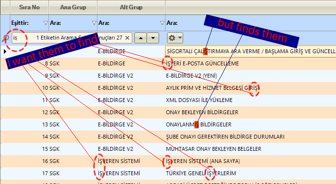 All text in my grid is capitalized. However, when I type in lowercase in the search box, there is a problem with non-English characters. I want lowercase "i" to change to uppercase "İ", but the search doesn't work properly because it turns into uppercase "I".