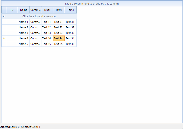 In this mode, you can select individual cells or row. Selected row is not the same thing as all cells in that row are selected, also you have independent SelectedRows and SelectedCells properties.