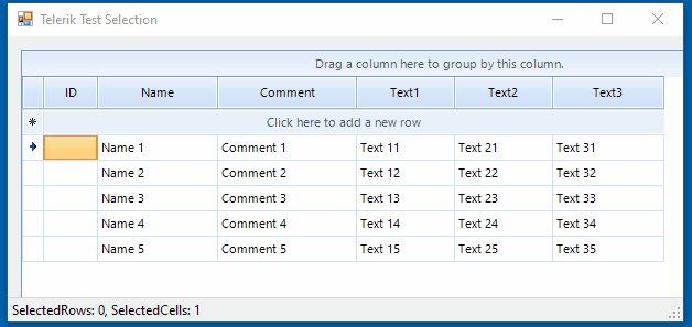 Is it a good idea or do you know any disadvantages of this solution? If yes, how can I solve this problem with dragging multiselection? Maybe CellClick is not a right event, but I don't know which would be better. I have attached test project again (TestTelerikSelection).