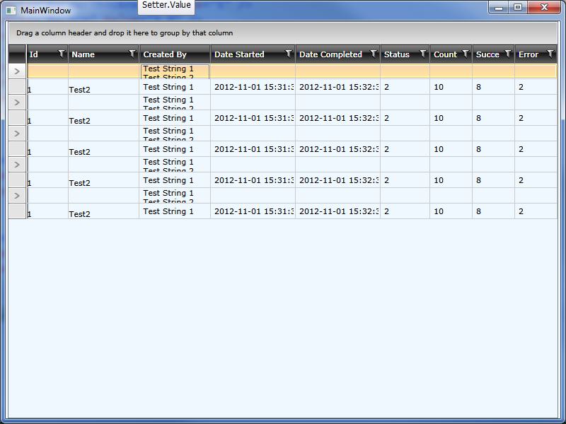 Also, even though I've set the TextWrapping to NoWrap and TextTrimming to WordEllipsis for the column containing the longer text with line breaks the text in that cell is displayed in two rows.