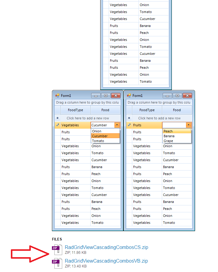 The C#/VB projects are available at the bottom of the referred KB article in Stefan's reply on 14-Apr-2014. I am posting the link again: http://www.telerik.com/support/kb/winforms/gridview/details/cascading-comboboxes-in-radgridview