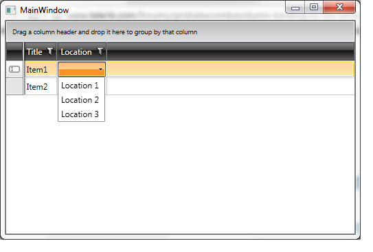 But here the problem is I am not able to see the value of Location when Grid is loaded.The following is Xaml related to GridviewComboColumn.