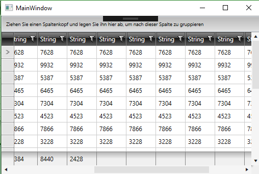I tried our example with 30 columns and everything works as expected. The difference between our implementation and the implementation of your project is that for the source property of the binding is used not a relative source but as a static resource. Please take a look at it again and let me know if this approach fits your scenario.