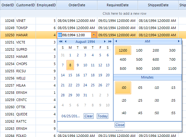 Currently, if I add a GridViewDateTimeColumn into a RadGridView, I can only edit the date component and I don't have a TimePicker part, even though I choose a DateTimePicker component as EditorType property. I'm even not allowed to set the time by typing it.