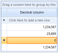for(int i = 1; i < 6; i++){ GridViewDecimalColumn myCol = this.Grid.Columns[i] as GridViewDecimalColumn; myCol.FormatString = "{0:###,###,###,###}";}As you can tell this code turns this value: 1234567 into this: 1,234,567