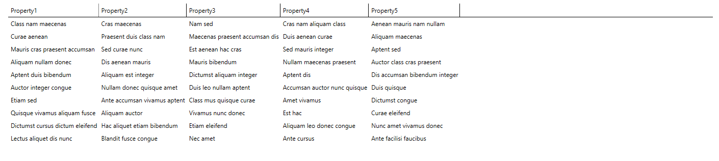 <telerik:RadGridView ShowGroupPanel="False" CanUserFreezeColumns="False" BorderThickness="0" RowIndicatorVisibility="Collapsed" IsFilteringAllowed="False" GridLinesVisibility="None" ItemsSource="{Binding Collection}"/>You could check the updated project and image for further reference.
