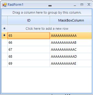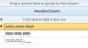 Hi, I am using a GridViewMaskBoxColumn to edit and display a 12 character long string as follows: "AAAA-AAAA-AAAA"