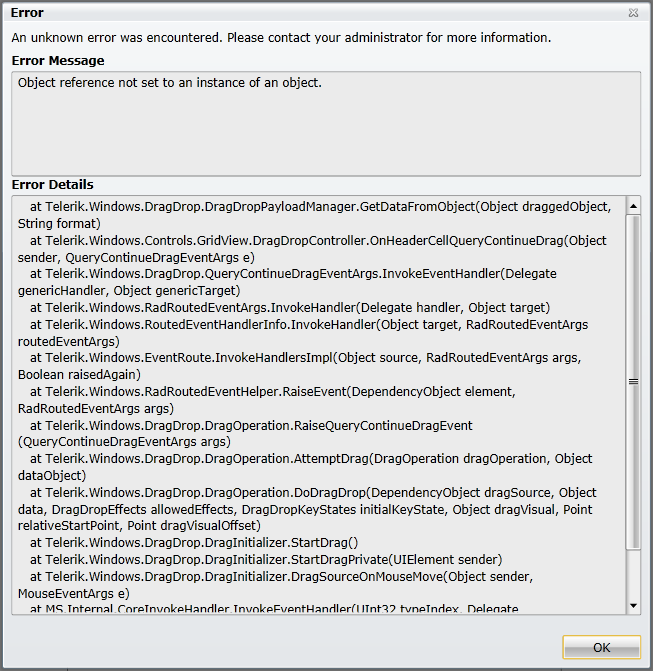 attached error. I found it is readily reproducible, by quickly dragging one of