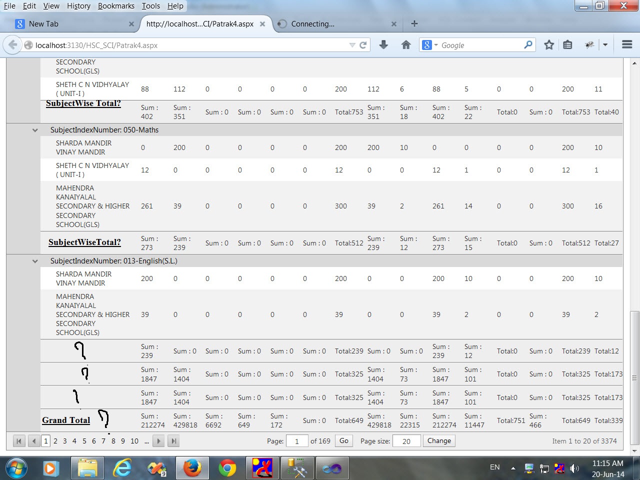 Groupwise Total where groupwise total row is displayed and Grand Total where Last row for total displayed