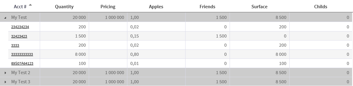By searching I understand that "groups" are perfect solution for me, but group headers have been designed as a single cell, so I cannot use aggregates values inside and build similar structure. Maybe I can try to build header template as a grid with similar columns and do some styling, but it's just another workaround.