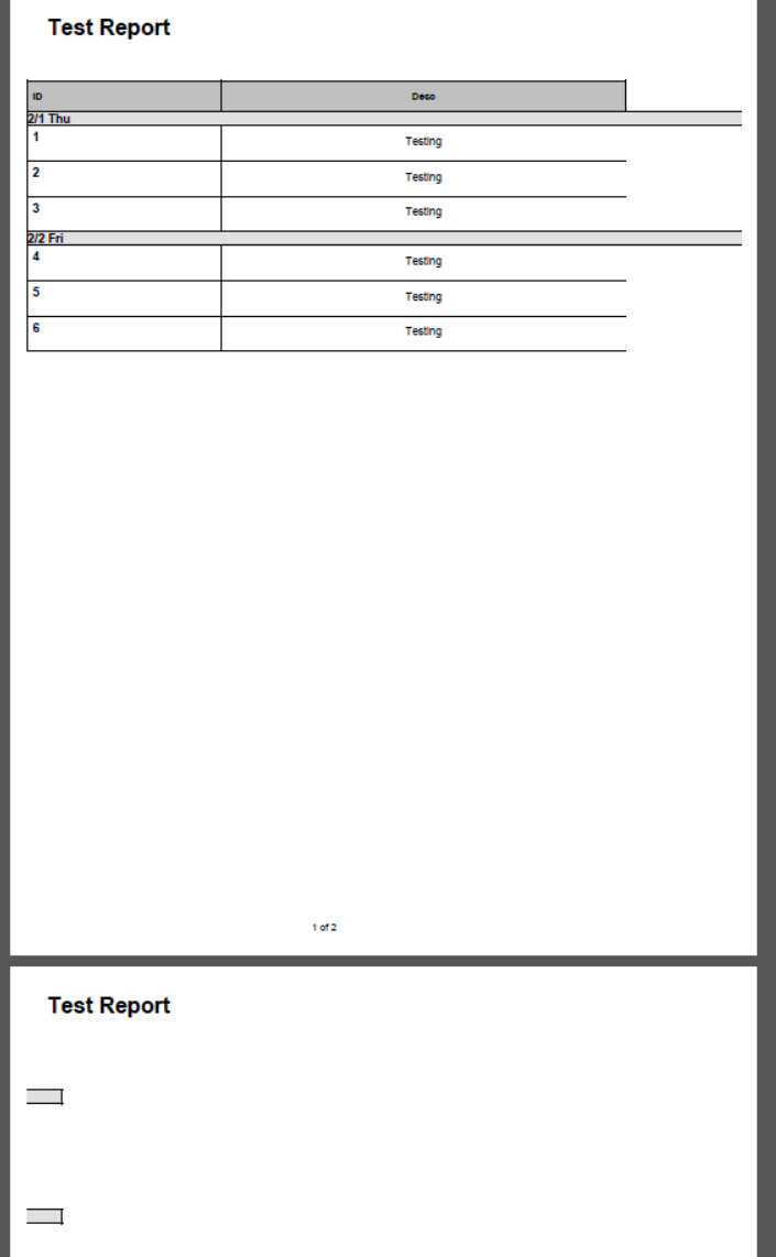 We'll try the structure you suggested, but is there something wrong with the List approach? We have many other elements on the report other than what was in the sample. It seems like that grouped header row is not rendering properly. Can you confirm whether we are using it correctly, or is it a bug?