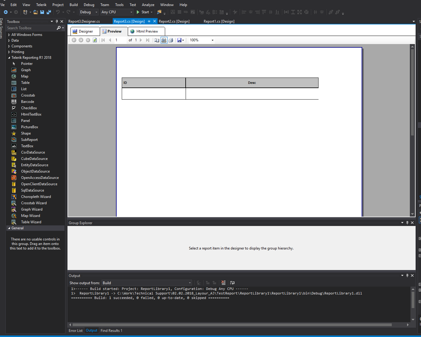 2. Add new GroupHeader Section including the two TextBox items - "ID" and "Description". This group header might be static one.