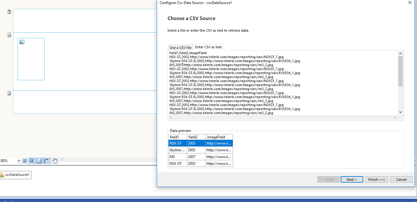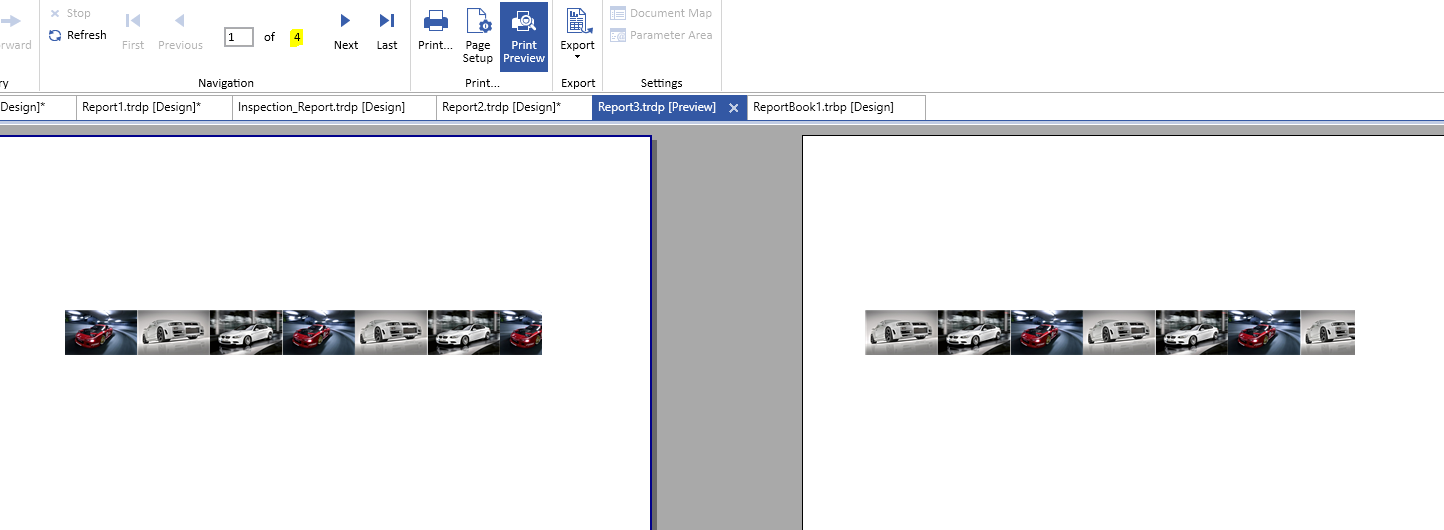 I have attached a sample rendered report where the images are spanned across 4 pages and also a screenshot for datasource.
