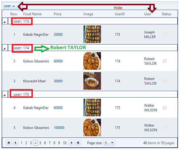 Groupable="true" GroupByExpression="Food_User_ID user group by Food_User_ID">