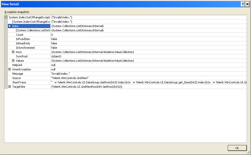 I have urgent problem -> we have a gridview bound to binding list -> is working fine but sometimes im hanfling an exception ( especially when have set groupig for some column )