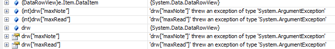 i get the error on the "if ((int)drw["maxRead"] != (int)drw["maxNote"