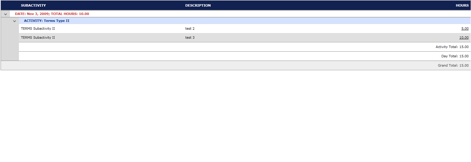 Private Sub BuildDataGrid(ByVal view As Views) Try Dim addColumn As Action(Of GridColumn) = Sub(column) BottomSection(Of TMGrid)("dgView").MasterTableView.Columns.Add(column) Dim addToGrouping As Action(Of GridColumn) = Sub(column) BottomSection(Of TMGrid)("dgView").MasterTableView.GroupByExpressions.Add( New GridGroupByExpression(column) ) End Sub With BottomSection(Of TMGrid)("dgView") .MasterTableView.Columns.Clear() .MasterTableView.GroupByExpressions.Clear() Select Case view Case Views.Daily TMGrid.AddBoundColumn( addColumn, Function() "tl_date", Function() "Date", Function() False, Function() "{0:MMMM d}", Sub(column) Dim grouping As New GridGroupByExpression() Dim selectDate As New GridGroupByField() selectDate.FieldName = "tl_date" selectDate.FieldAlias = "tl_date" selectDate.FormatString = TMGrid.SHORT_DATE_FORMAT selectDate.HeaderText = "DATE" selectDate.HeaderValueSeparator = ": " Dim selectTotalHours As New GridGroupByField() selectTotalHours.FieldName = "te_hours" selectTotalHours.FieldAlias = "te_hours" selectTotalHours.HeaderText = "TOTAL HOURS" selectTotalHours.Aggregate = GridAggregateFunction.Sum selectTotalHours.FormatString = TMGrid.HOURS selectTotalHours.HeaderValueSeparator = ": " Dim groupByDate As New GridGroupByField() groupByDate.FieldName = "tl_date" groupByDate.FieldAlias = "tl_date" grouping.SelectFields.Add(selectDate) grouping.SelectFields.Add(selectTotalHours) grouping.GroupByFields.Add(groupByDate) 'grouping.Expression = "tl_date [Date], Sum(te_hours) TotalHours [Total Hours] Group By tl_date" BottomSection(Of TMGrid)("dgView").MasterTableView.GroupByExpressions.Add(grouping) End Sub ) TMGrid.AddBoundColumn( addColumn, Function() "tc_name", Function() "ACTIVITY", AddressOf RequireSubactivity, Nothing, addToGrouping ) TMGrid.AddBoundColumn( addColumn, Function() "tsc_name", Function() "SUBACTIVITY" ) TMGrid.AddBoundColumn( addColumn, Function() "te_desc", Function() "DESCRIPTION" ) TMGrid.AddBoundColumn( addColumn, Function() "te_hours", Function() "HOURS", Function() True, Function() "<a href='{0}'>{0:#0.00}</a>", Sub(column) column.ItemStyle.HorizontalAlign = HorizontalAlign.Right column.HeaderStyle.HorizontalAlign = HorizontalAlign.Right column.FooterStyle.HorizontalAlign = HorizontalAlign.Right column.Aggregate = GridAggregateFunction.Sum column.FooterAggregateFormatString = "Total: {0:#0.00}" End Sub ) Case Views.Monthly TMGrid.AddBoundColumn( addColumn, Function() "tl_monthname", Function() "Month", Function() False, Nothing, addToGrouping ) TMGrid.AddBoundColumn( addColumn, Function() "tc_name", Function() "ACTIVITY", AddressOf RequireSubactivity, Nothing, addToGrouping ) TMGrid.AddBoundColumn( addColumn, Function() "tsc_name", Function() "SUBACTIVITY" ) TMGrid.AddBoundColumn( addColumn, Function() "te_desc", Function() "DESCRIPTION" ) If (Convert.ToInt32(ViewState("ReportingMode")) = TMTERMSOptions.TMTERMSReportingModes.Daily) Then TMGrid.AddBoundColumn( addColumn, Function() "te_hours", Function() "HOURS", Function() True, Function() "{0:#0.00}", Sub(column) column.ItemStyle.HorizontalAlign = HorizontalAlign.Right column.HeaderStyle.HorizontalAlign = HorizontalAlign.Right column.FooterStyle.HorizontalAlign = HorizontalAlign.Right column.Aggregate = GridAggregateFunction.Sum column.FooterAggregateFormatString = "Total: {0:#0.00}" End Sub ) Else TMGrid.AddBoundColumn( addColumn, Function() "te_hours", Function() "HOURS", Function() True, Function() "<a href='{0}'>{0:#0.00}</a>", Sub(column) column.ItemStyle.HorizontalAlign = HorizontalAlign.Right column.HeaderStyle.HorizontalAlign = HorizontalAlign.Right column.FooterStyle.HorizontalAlign = HorizontalAlign.Right column.Aggregate = GridAggregateFunction.Sum column.FooterAggregateFormatString = "Total: {0:#0.00}" End Sub ) End If TMGrid.AddBoundColumn( addColumn, Function() "certified_message", Function() "CERTIFICATION" ) TMGrid.AddBoundColumn( addColumn, Function() "approved_message", Function() "APPROVAL" ) TMGrid.AddBoundColumn( addColumn, Function() "te_approved_hours", Function() "APPROVED HOURS", Function() "{0:#,##0.00}" ) Case Views.Annual TMGrid.AddBoundColumn( addColumn, Function() "tl_year", Function() "YEAR", Function() False, Nothing, addToGrouping ) TMGrid.AddBoundColumn( addColumn, Function() "tc_name", Function() "YEAR / ACTIVITY", AddressOf RequireSubactivity, Nothing, addToGrouping ) TMGrid.AddBoundColumn( addColumn, Function() "tsc_name", Function() "YEAR / ACTIVITY / SUBACTIVITY" ) TMGrid.AddBoundColumn( addColumn, Function() "te_hours", Function() "HOURS", Function() "{0:#,##0.00}" ) End Select End With Catch ex As Exception Throw New Exception("BuildDataGrid procedure failed", ex) End TryEnd Sub