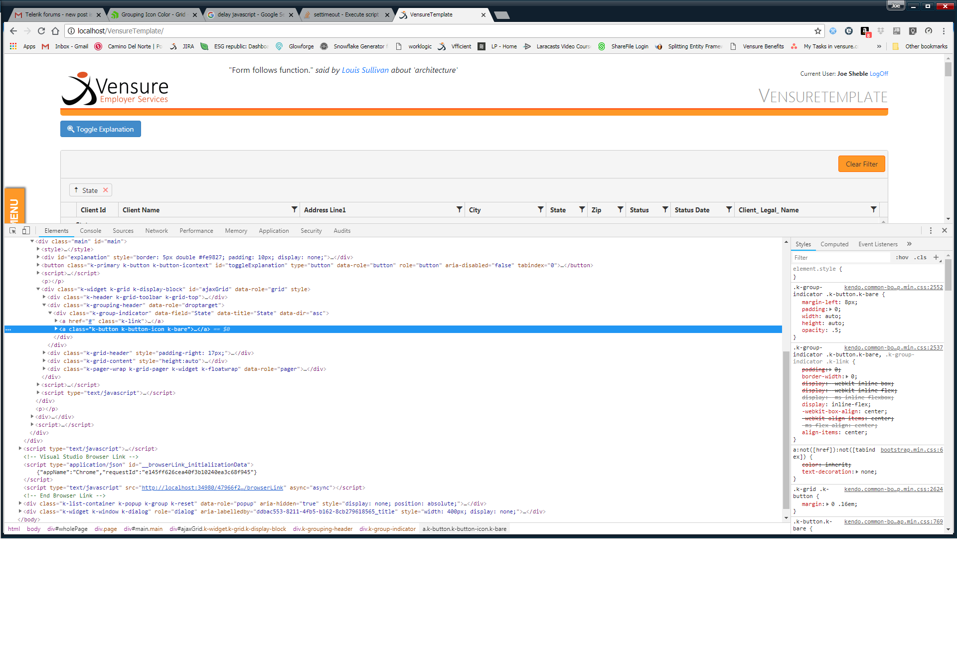 I need just one simple thing. I need to change the color from the barely visible half transparent close icon on grouping headers to actually be visible. I have tried setting a multitude of classes to try and get this damn thing to show up. I've actually ended up screwing up my entire grid just trying to find this one simple thing. When oh when will you people make overriding these damn classes and styles easy. ARGH!!!