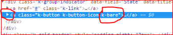 1) After inspecting the element I found that the "a" element has class "k-bare" it has the other two classes but they sound more generic and could affect other buttons.