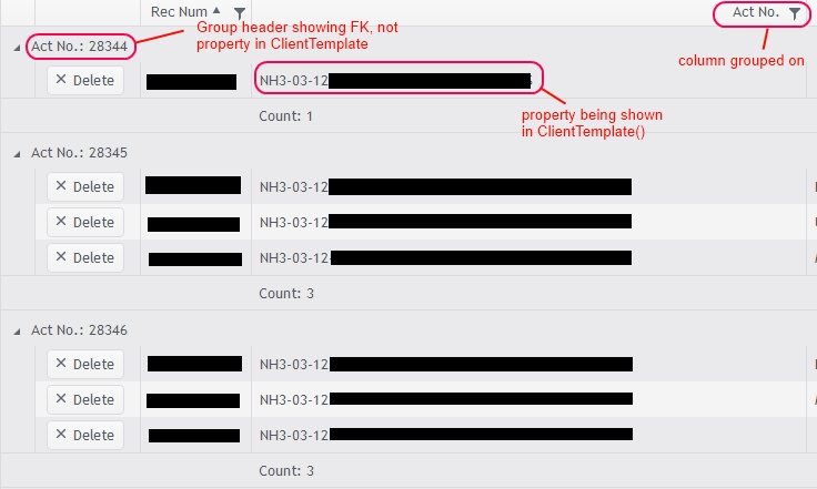 I'm having the same issue as described in this forum post. I have a foreign key column in my grid. In the ClientTemplate() for this column, I'm showing a different property of the ViewModel. That works as expected. When I drag the column into the groupables area, it works correctly, however it shows the foriegn key property being grouped on, not the property I'm showing in the ClientTemplate() for the column.