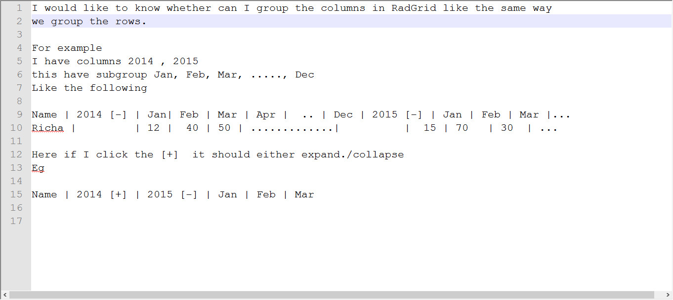 I would like to know whether can I group the columns in RadGrid like the same way we group the rows.