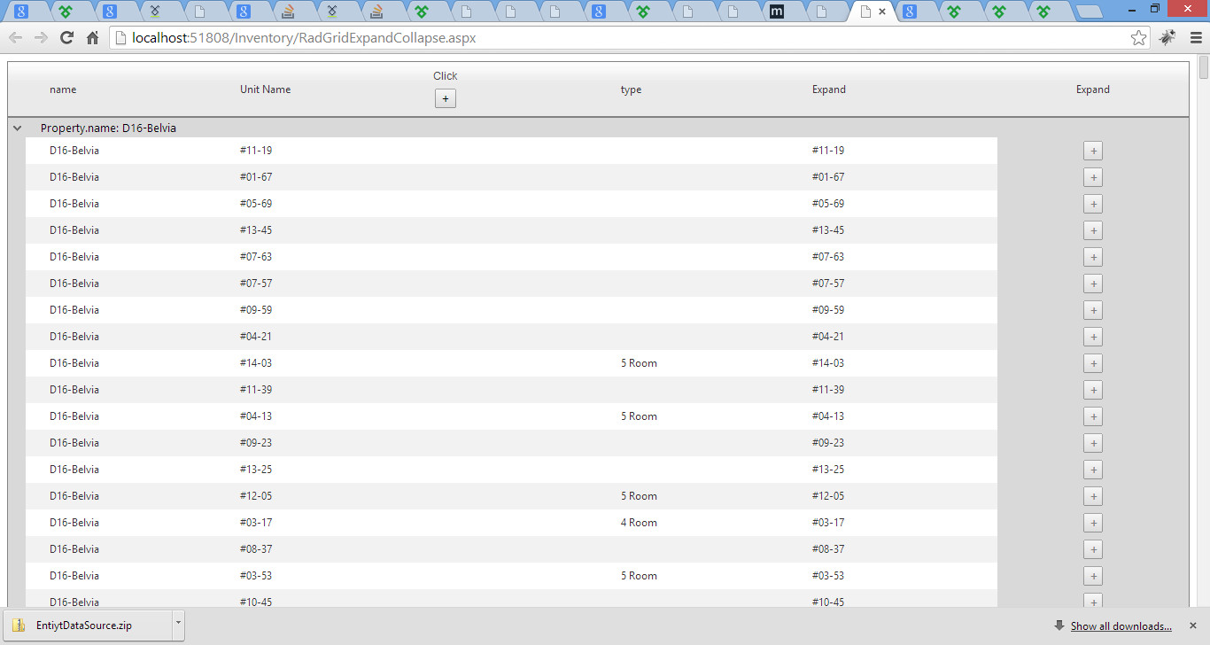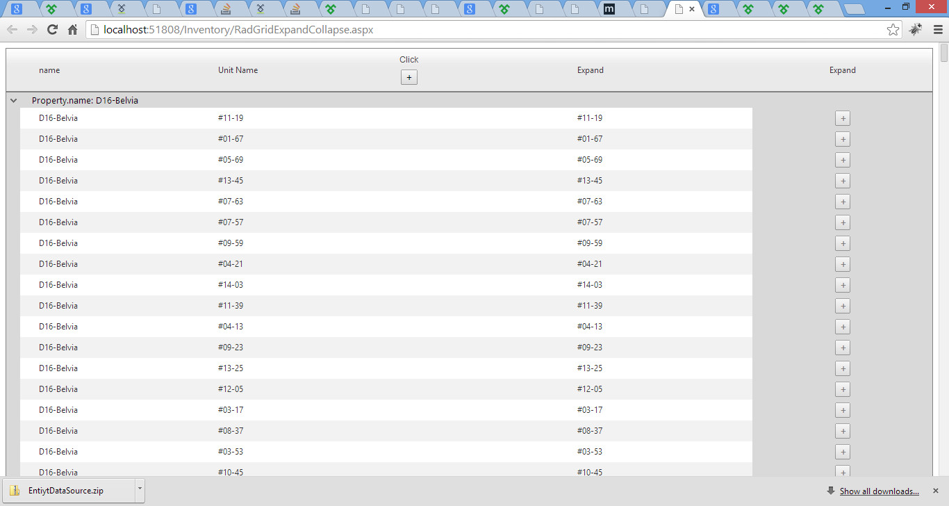 Name | 2014 [-] | Jan| Feb | Mar | Apr | .. | Dec | 2015 [-] | Jan | Feb | Mar |...