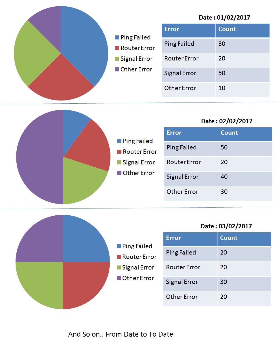 I am looking for grouping of table and chart (pie) so that entire report can display multiple rows containing both of them based on group by date.