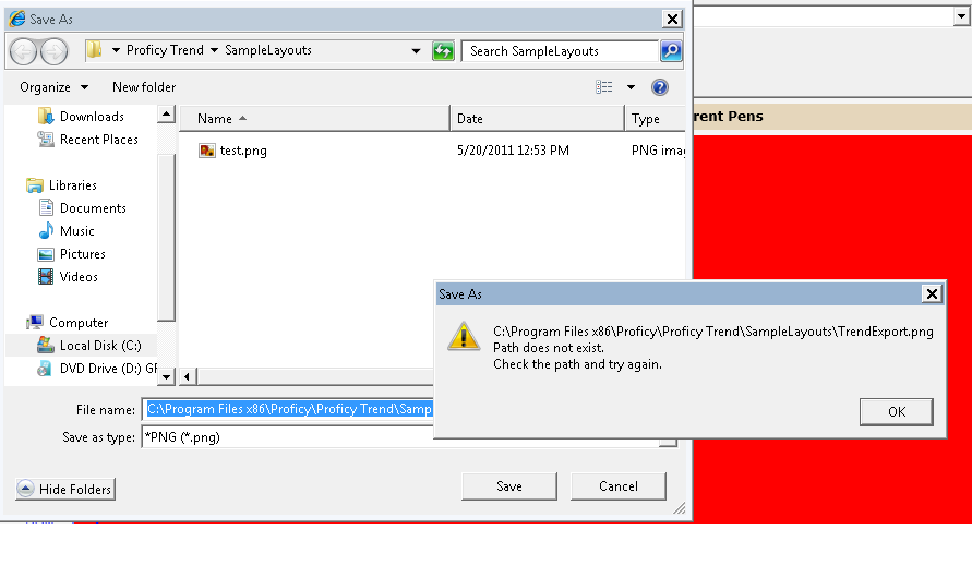 The attachment shows the error. Why would it work during manual testing? I've even manually typed the path into the save path to make sure that's not an issue.