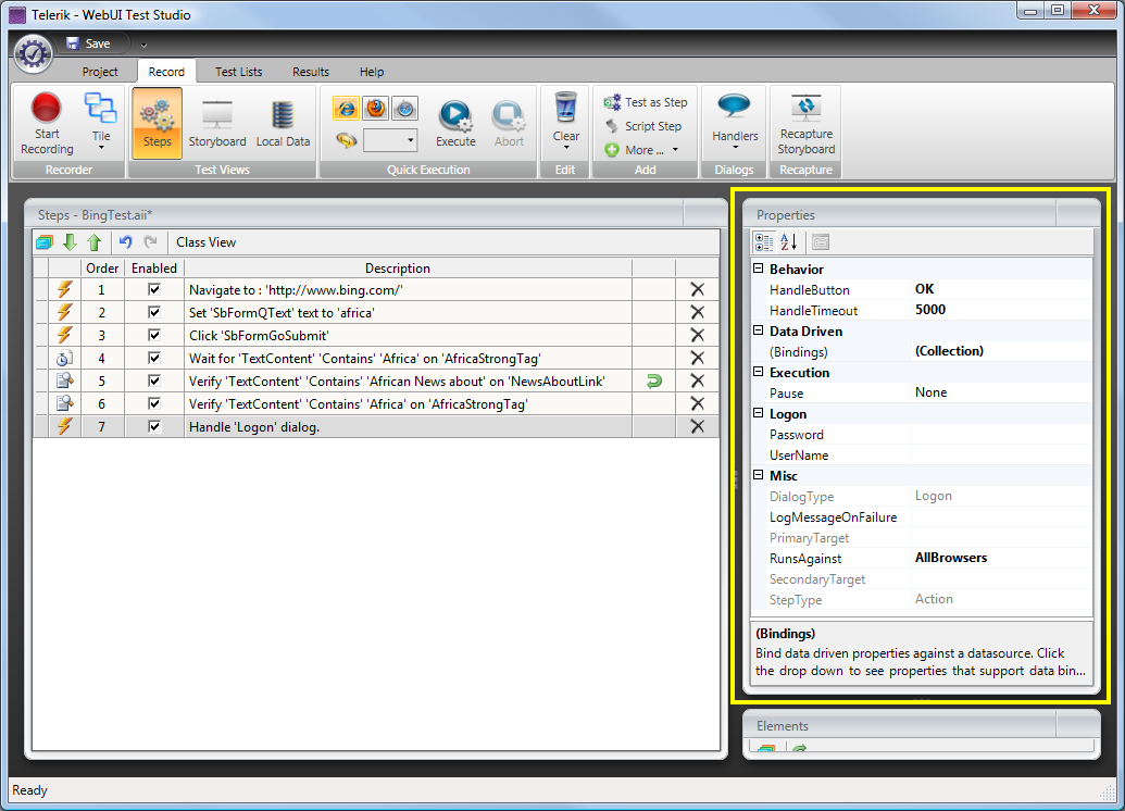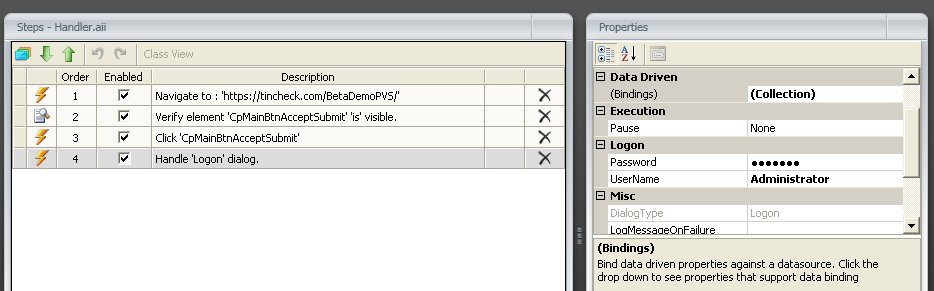 A 'Logoin' dialog handler step has been added to your test. Please select the added step in 'Test Explorer' and edit its properties to customize dialog handling.