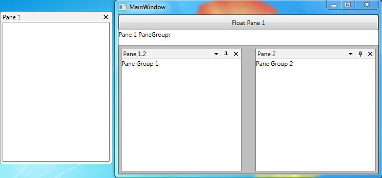 <?xml version="1.0" encoding="utf-8"?> <RadDocking> <DocumentHost> <RadSplitContainer SerializationTag="m_splitContainer2" Orientation="Vertical"> <Items> <RadPaneGroup SerializationTag="m_paneGroup2" SelectedIndex="-1"> <Items /> </RadPaneGroup> <RadPaneGroup SerializationTag="m_paneGroup3" SelectedIndex="-1"> <Items /> </RadPaneGroup> </Items> </RadSplitContainer> </DocumentHost> <SplitContainers> <RadSplitContainer SerializationTag="m_splitContainer1" Dock="DockedLeft" Width="240"> <Items> <RadPaneGroup SerializationTag="m_paneGroup1" SelectedIndex="-1"> <Items /> </RadPaneGroup> </Items> </RadSplitContainer> </SplitContainers> </RadDocking>A RadPane is made floating programmatically in the runtime beginning.