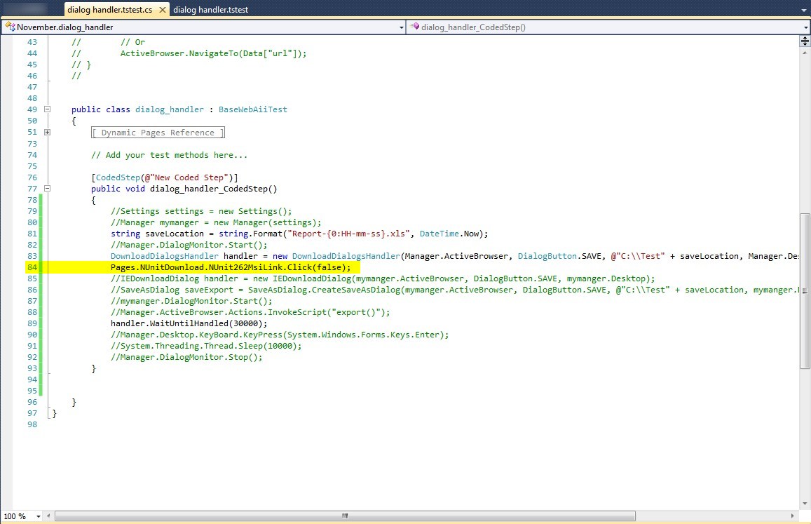 1) When setting the "Handle 'Download' dialog." step to HandleButton = RUN or OPEN, in both cases it saves the file but then the step fails on time out - not sure if a defect? this is on the latest Test Studio release. (similarily when recording an Open action and then running the step).