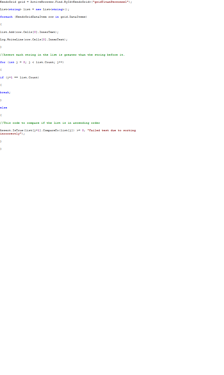 1 line of code --> KendoGrid: "Data' item count 'Equals' '4'. (I used the tool to verify without manipulating the code).