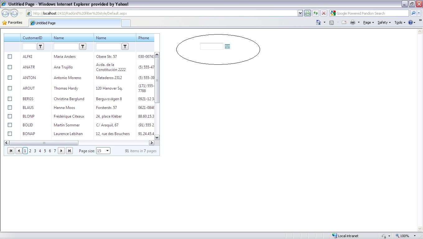 <telerik:GridDateTimeColumn DataField="customdate" UniqueName="customdate" HeaderText="customdate" FilterControlWidth="100px"> <HeaderStyle Width="100px" /> <ItemStyle Width="100px" /> </telerik:GridDateTimeColumn>Note : i also notice one thing is that when i click i mouse hover on datepicker it will automatically come inside in grid.(means it come in to normal UI.)