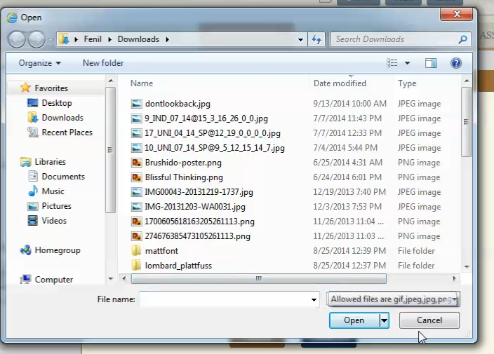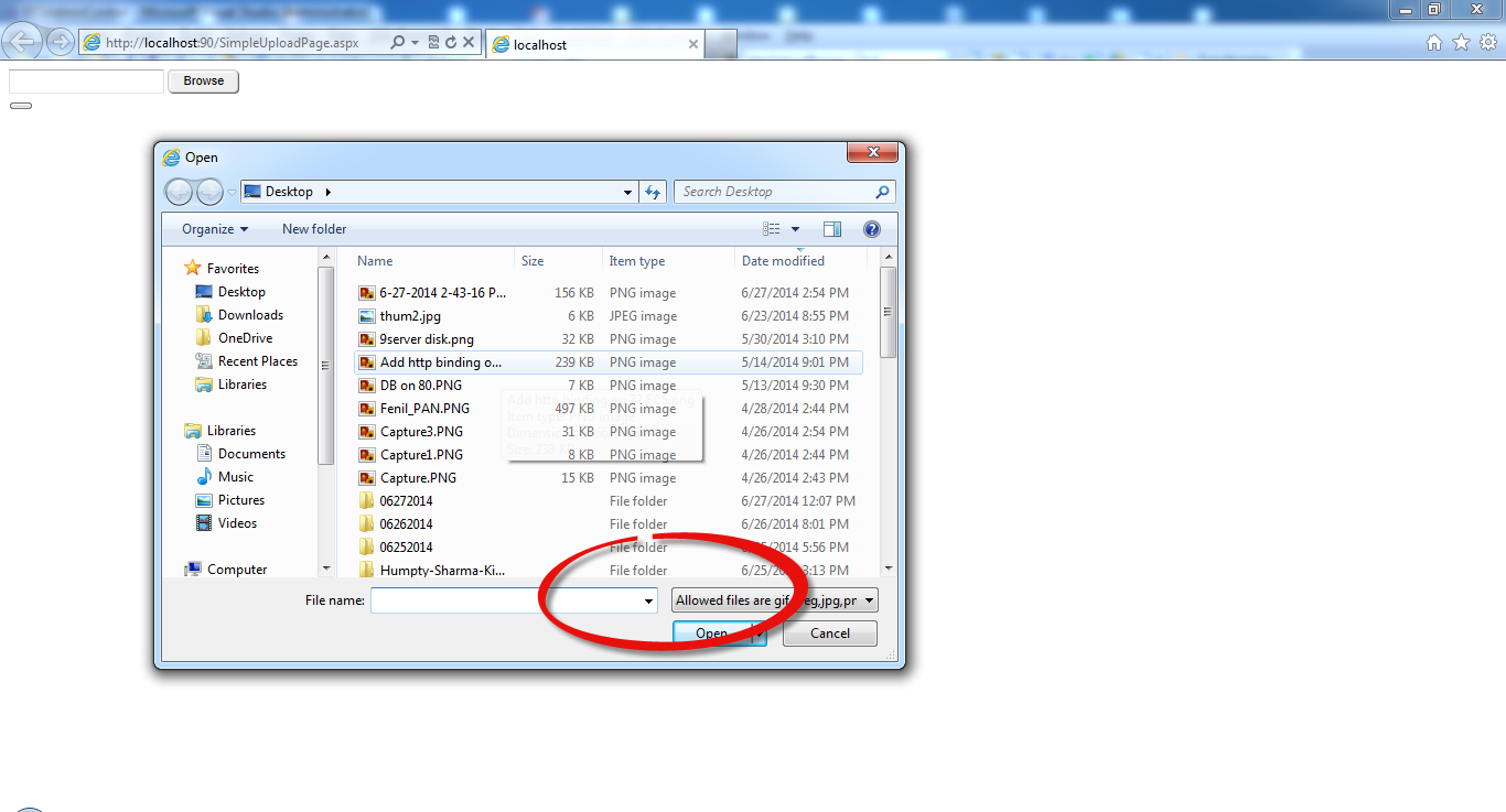 I have kept filtration for the images. If i am trying to browse file that filter is not working at first time.