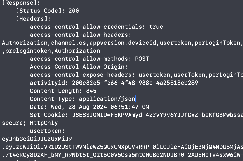 - Screenshot 2 shows how the header "usertoken" appears in the Xcode logs of my mobile application.