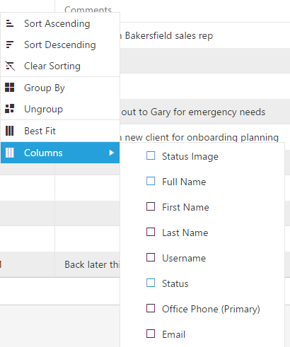 My application has many RadGrid instances, and for some reason none of them are showing column checkbox selections correctly in their header context menus.