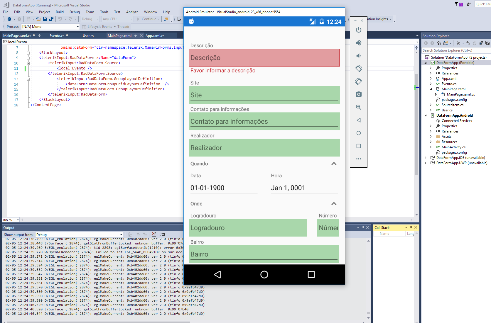 [DisplayOptions(Group = "Onde", PlaceholderText = "Número", Header = "Número", Position = 0, ColumnPosition = 4)]public string Numero{ get { return _Numero; } set { if (value != _Numero) { _Numero = value; if (PropertyChanged != null) { PropertyChanged(this, new PropertyChangedEventArgs("Numero")); } } }}public EventoView(){ InitializeComponent(); _evento = new Evento(); this.BindingContext = _evento; this.dataForm.RegisterEditor(nameof(Evento.Numero), EditorType.TextEditor); }3 Answers, 1 is accepted