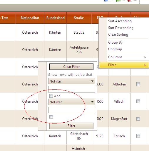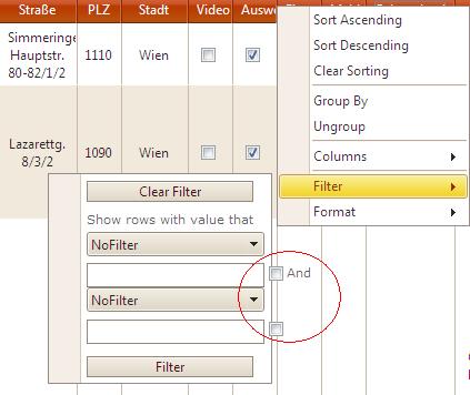 - In addition to the fact that you can filter a column by two conditions related with a logical "AND" operator, there is another reason for rendering two filtering controls in the filter context menu for each column. Here is short quote from our documentation that describes it: