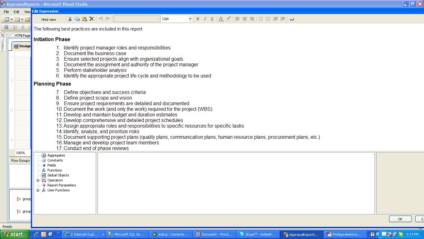 I put static list items in htmlTextBox. It is showing more gap between two lines in design view. But it is showing less space in edit expression. And same code I copied to notepad and saved as html, it is showing exactly same as edit expression view.