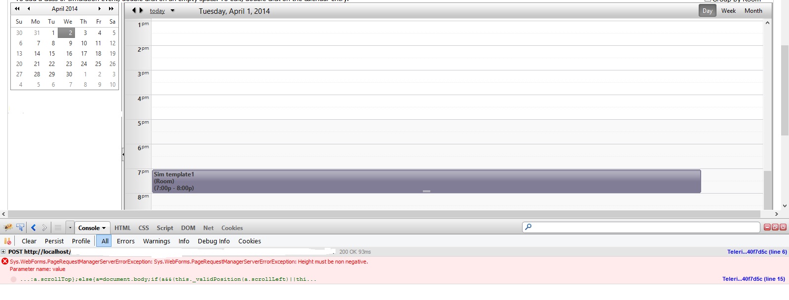 so the event would last from 11.53 PM to 12.01 AM of next day. For this scenario when i click "Next day" or select that date on calender, it throws Javascript Error "Height must be non negative. Parameter name: value".