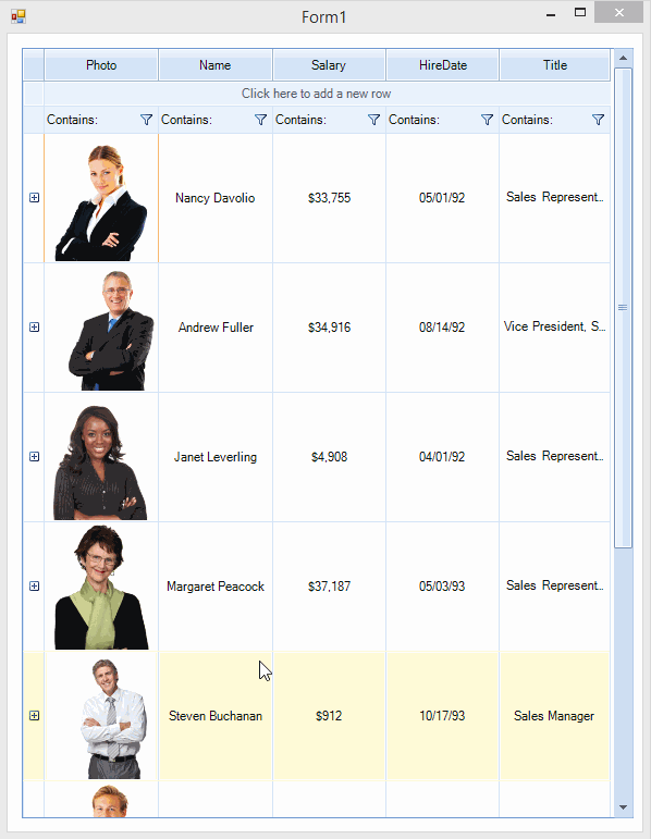 and have the RowExpanding call display the RadVirtualGridand not the "ToString()" representation of DisplayMe? I see a way to do it with an Image, but how would I embed another RadVirtualGridwithin a cell? Is this possible?