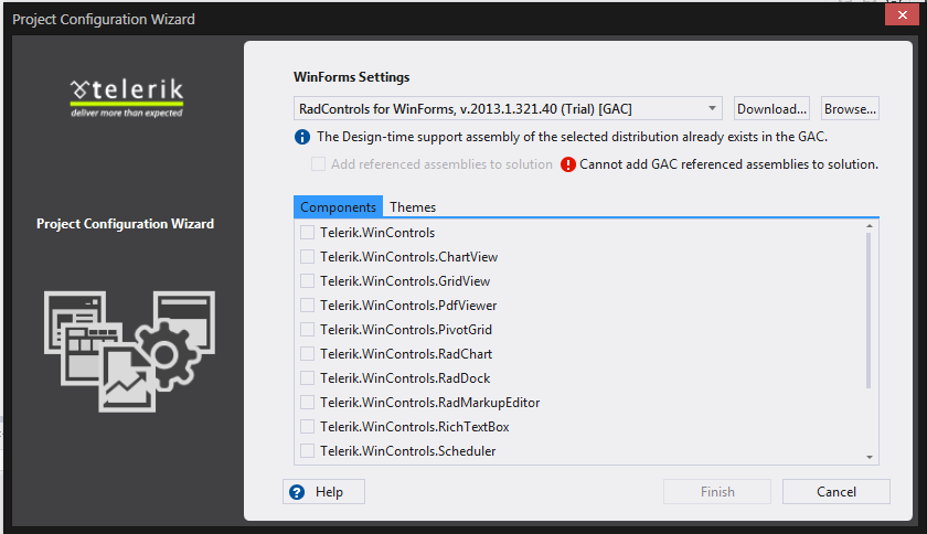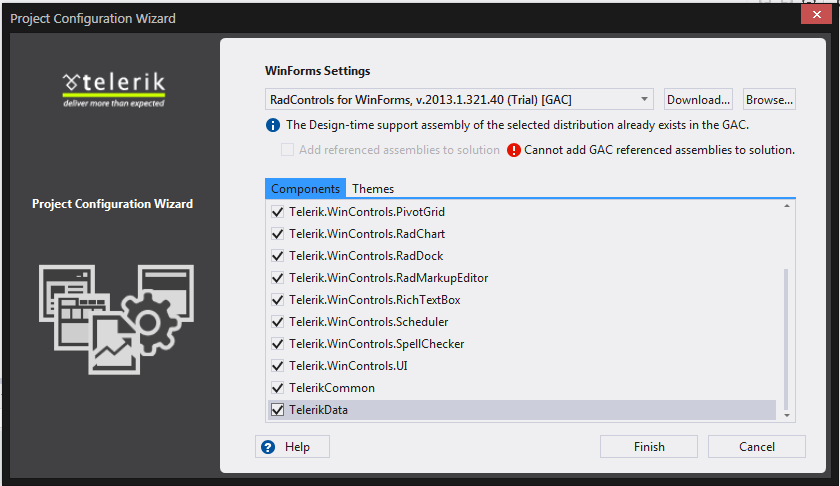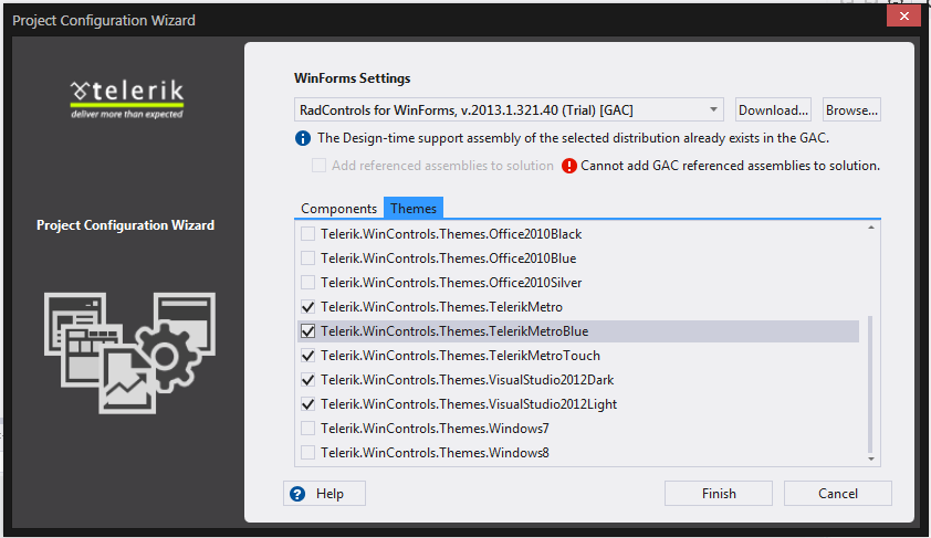 Recent I have been having trouble unseeing themes for rad controls. I have visual studio 2012 ultimate and premium the same thing happens on both.