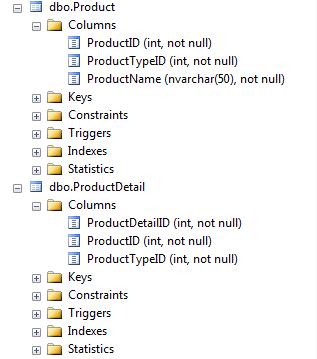 In the detail datakeynames, I have ID (primary key), ProductTypeID and ProductID