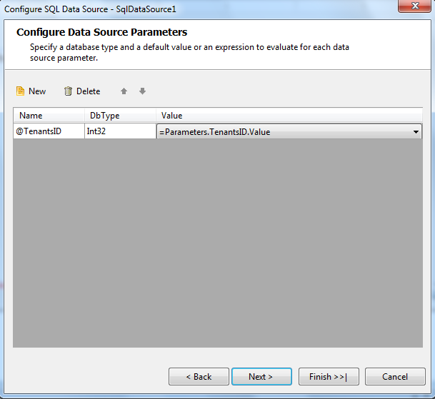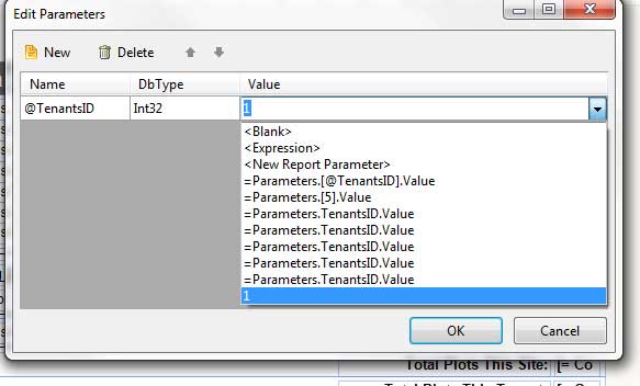 I have a parameter in the report called @TenantsID which is an Integer. Below is my code(vb) to replace it.
