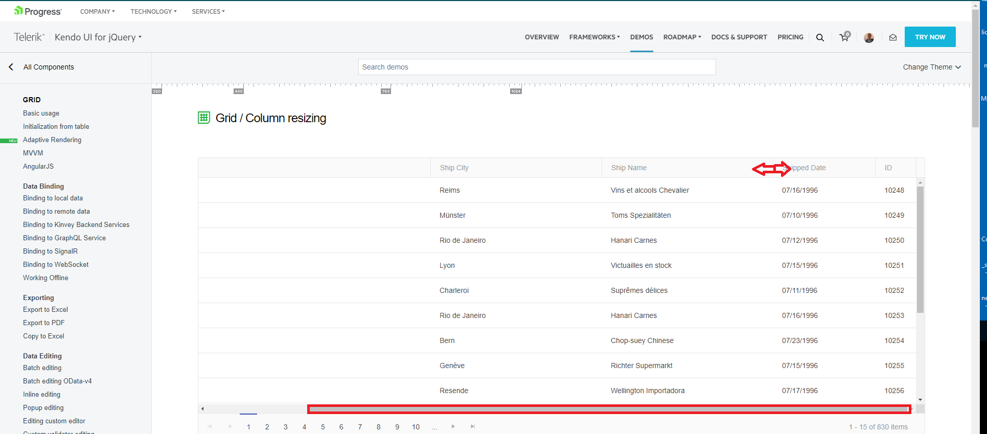 I have an issue with resizable grid columns when the scroll of the page is moved from left to right.