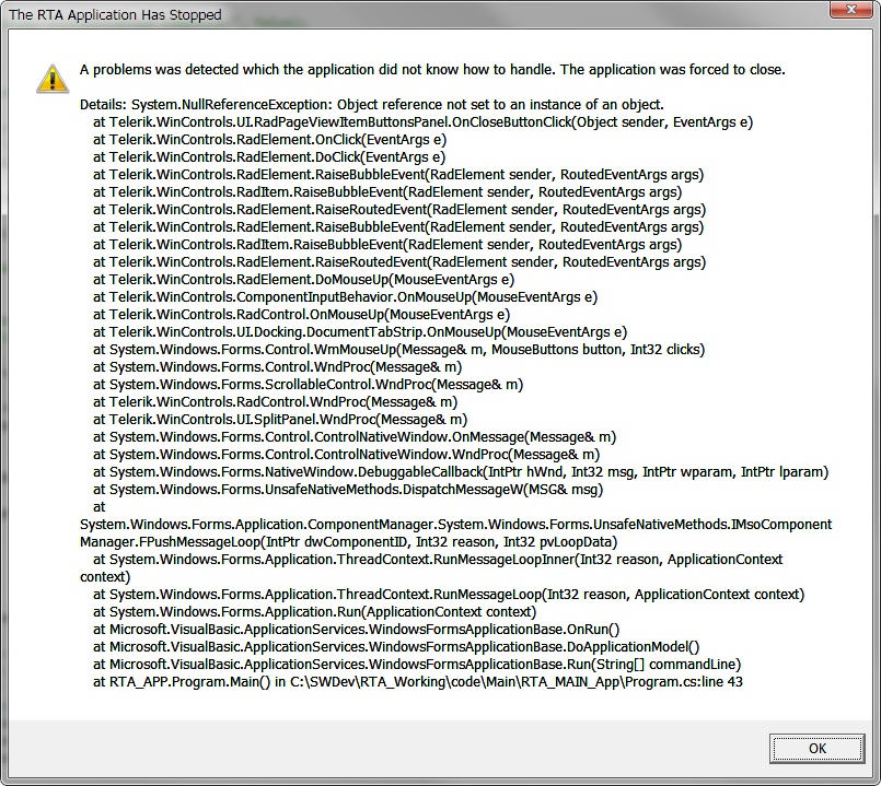 I am not sure what is the complete scenario that reproduces the issue. However, if the CloseAction property for the available DockWindows is set to CloseAndDispose this window is closed and then disposed and if you try to access it is possible to encounter an error. Please refer to the Removing ToolWindow and DocumentWindow at Runtime help article.